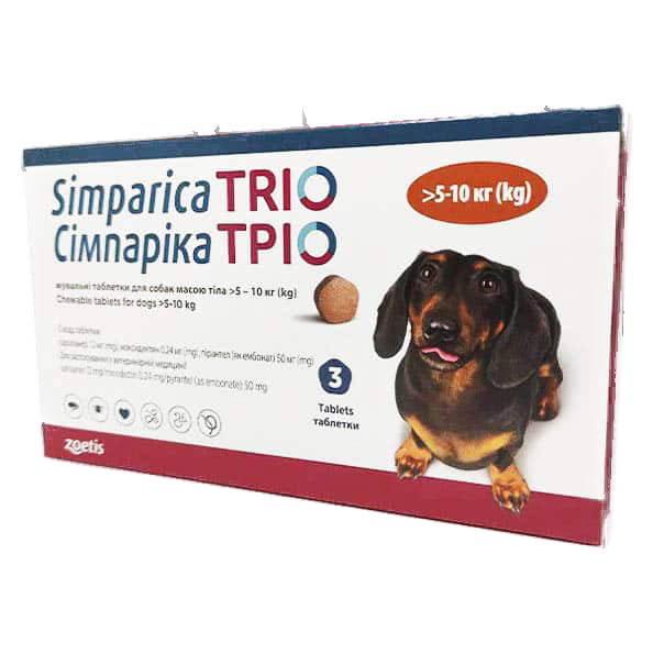 Use in dogs that have mixed invasions of external and internal parasites, or are at increased risk of infection. Simparica Trio is used against animals against ticks, fleas and gastrointestinal nematodes detected simultaneously. The drug is also used to prevent heartworm disease (Dirofilaria spp.) And angiostrongylus vasorum.